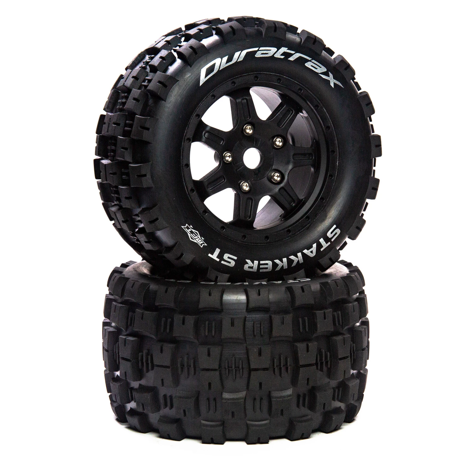 - (2) Duratrax STAKKER ST Belted 3.8 Mounted 17mm Hex Black